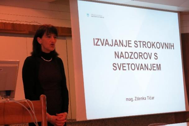 Srečanje je otvorila vabljena predavateljica z Ministrstva za zdravje mag. Zdenka Tičar, ki nam je predstavila namen in potek strokovnega nadzora, katerega za Ministrstvo za zdravje izvajajo nadzorniki - diplomirani delovni terapevti in poteka na predlog ministrstva, posameznika ali institucije pri delovnih terapevtih na njihovih delovnih mestih širom Slovenije. V zadnjem obdobju smo imeli več pripomb nad potrebnostjo tovrstnega nadzora predvsem pa nad izdanimi poročili in priporočili po opravljenem strokovnem nadzoru predvsem v DSO-jih. Tema je izjemno aktualna, saj so mnogi kolegi iz DSO že imeli strokovni nadzor, ki je podal različne ugotovitve niso pa vedeli kako in kaj na podlagi priporočil nadaljevati oziroma izboljšati svoje delovanje, ker se pogosto predlogi ne uresničijo oziroma ne udejanjijo tudi v konkretnem delu. Na vsa tovrstna vprašanja in dileme ter še na vrsto drugih smo dobili izjemno koristne napotke in usmeritve s strani predstavnice Ministrstva za zdravje, mag. Zdenke Tičar. Ob tem bi izpostavila še dilemo kako je glede nadzora socialne inšpekcije nad delovnim terapevtom v DSO-jih. Predvsem je prvo pravilo na katerega mora biti delovni terapevt zaposlen v socialnem zavodu pozoren za katero delovno mesto ima podpisano pogodbo o zaposlitvi - to je ključno pri razreševanju vseh nadaljnjih postopkov in vprašanj.
