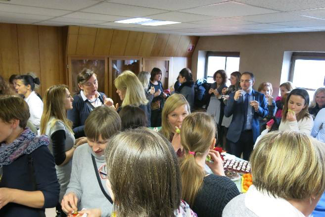 Podelitvi je sledilo druženje v preddverju predavalnice.
